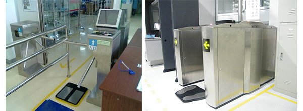 三輥閘,翼渣,進(jìn)入方向配置ESD檢測(cè)儀和感應(yīng)讀卡器,刷卡和靜電檢測(cè)合格后可以通行一人。外出方向也配置感應(yīng)讀卡器以供公司自行設(shè)定成雙向通道。出口閘機(jī)配置外出感應(yīng)讀卡器,可設(shè)置