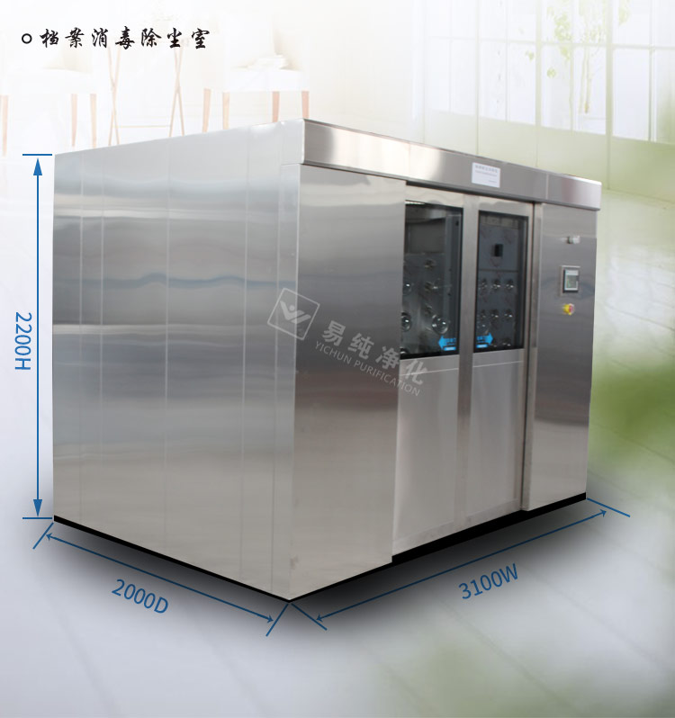 1) 檔案除塵消毒室內(nèi)外均為304不銹鋼,表面為拉絲或鏡面處理,不銹鋼厚度1.2mm;